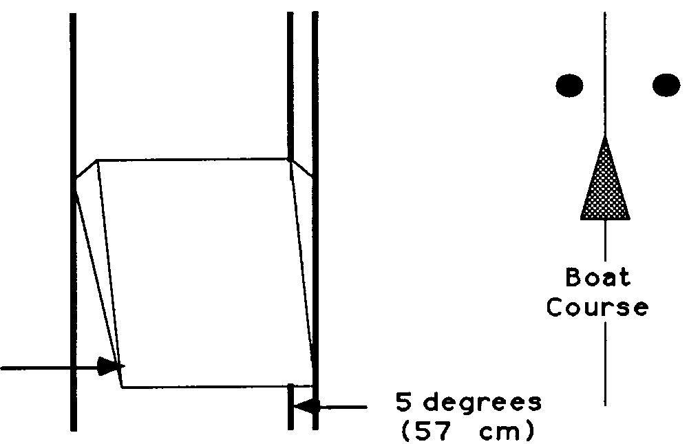 c) The buoys shall be fastened so that the distance between the inside edges of the two buoys (boat tunnel width) shall be 2.05 m +/-15 cm (1.9m - 2.2m).